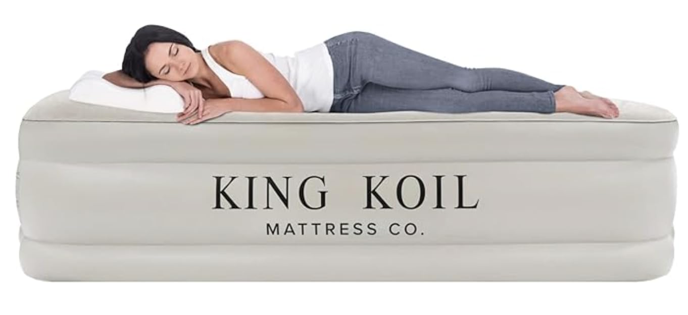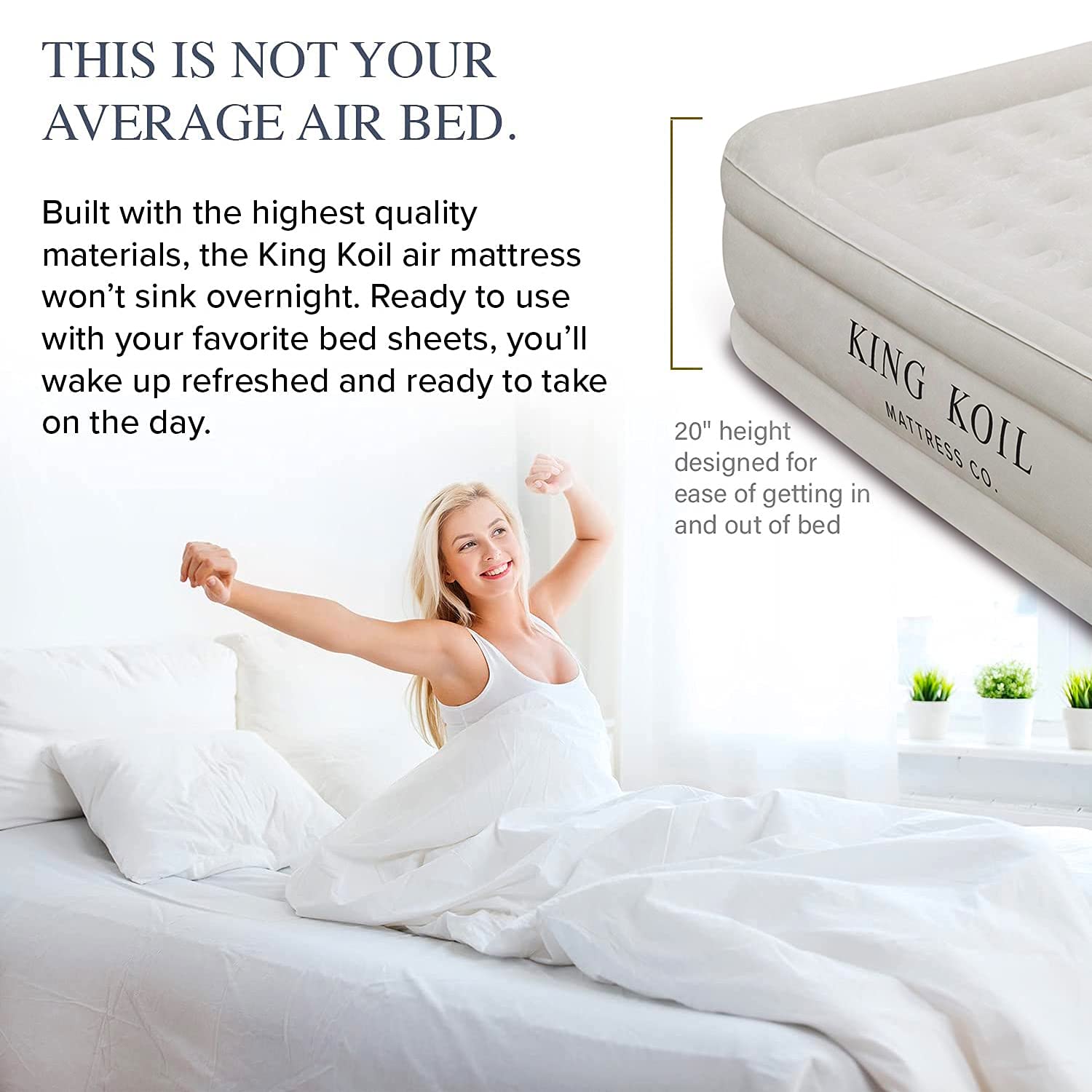 "The King Koil is not your average air mattress. It inflates twice as fast as the others"